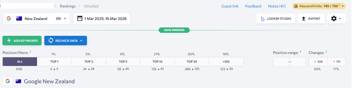 Tracked 600+ keywords to measure SEO performance.
